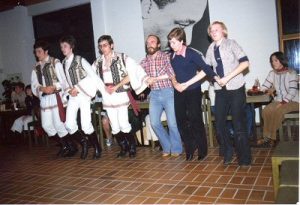 Often the group „Sousta“ joined us. The teacher, Conny Kissel, I knew from the Frankfurter group I onced danced with, „Slawia“.  She later set up her group in Groß-Umstadt where she taught at the school my kids attended. She also organized partes at a place there called „Gruber Hof“, a former farm house which also had an interesting  museum.